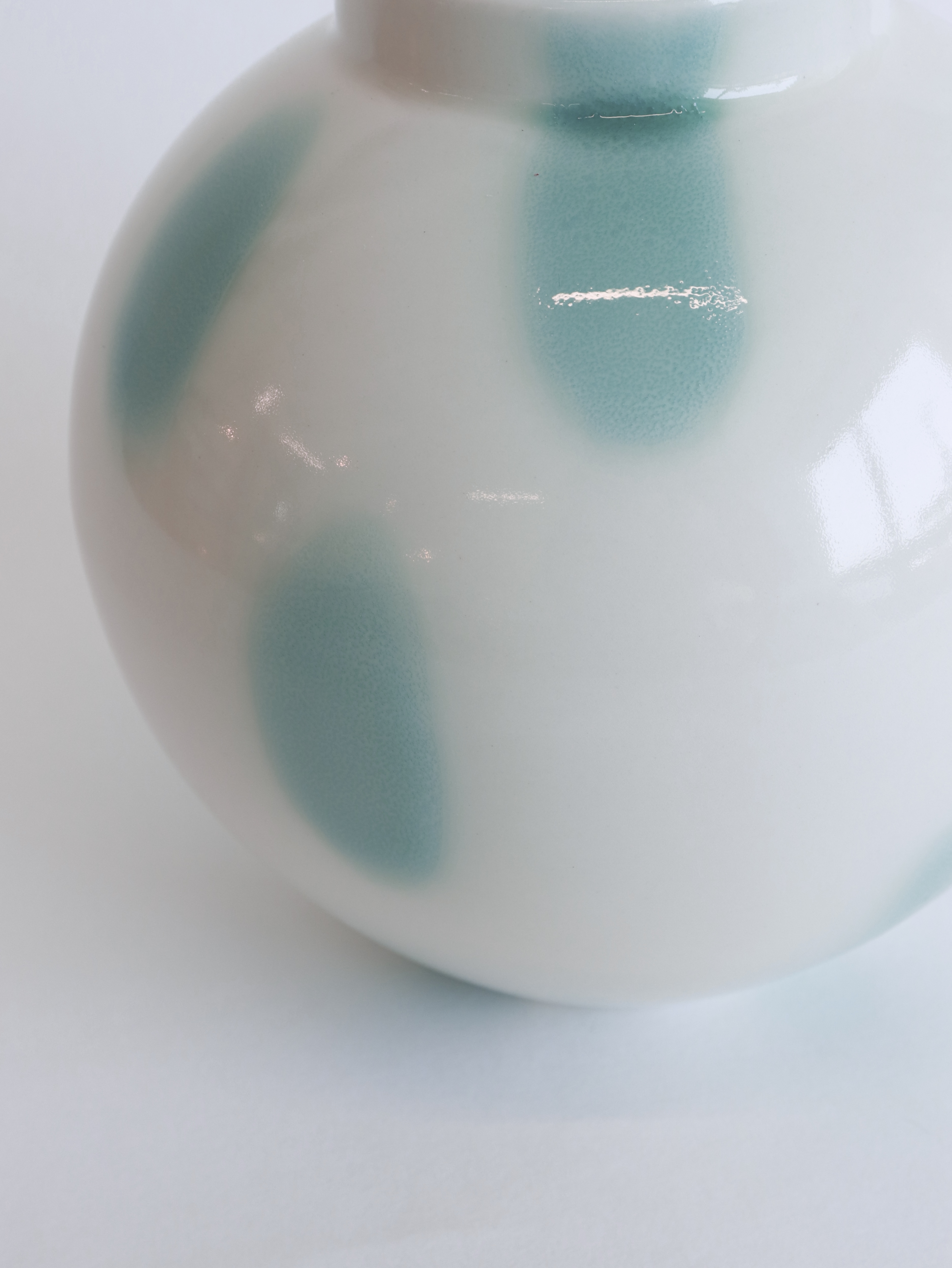청록색 반점들과 맑은 빛의 백자가 만나